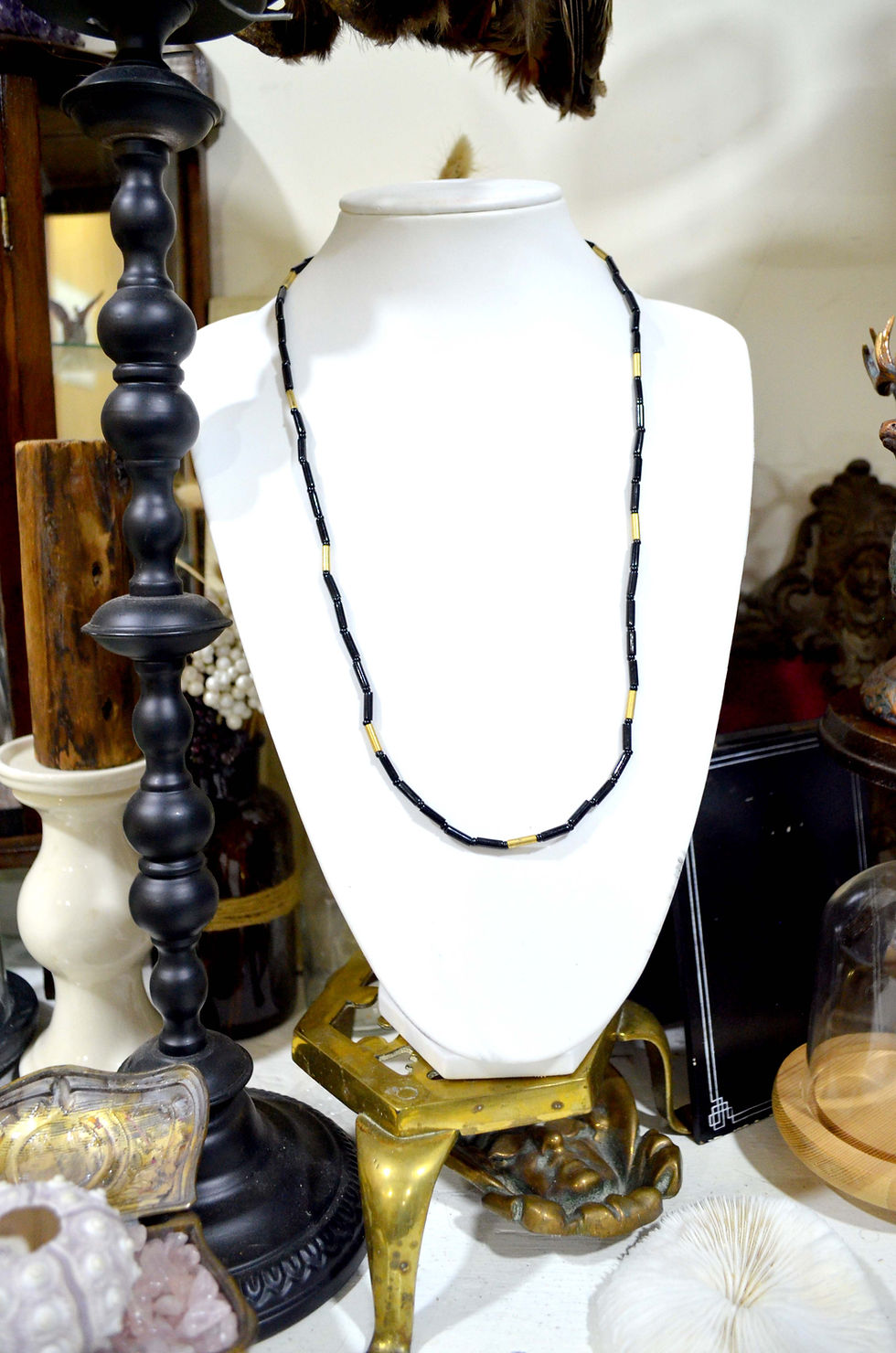 超美黑金色管狀珠子復古項鏈 高貴優雅 日本二手中古珠寶首飾古著