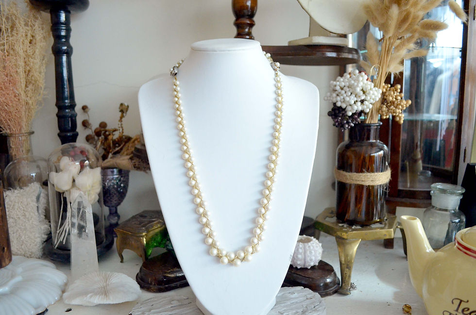 復古樹脂仿珍珠銀扣項鏈 高貴優雅 日本二手中古珠寶首飾古著