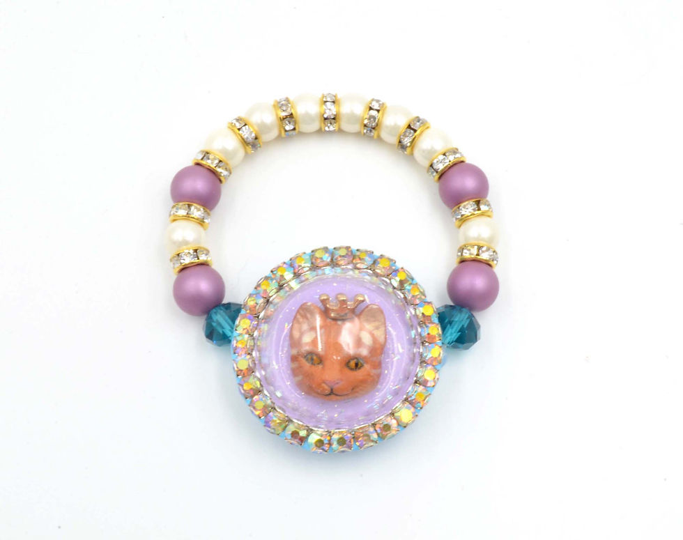 TIMBEE LO 紫色玻璃罩貓咪繞閃鑽邊橡筋手鍊